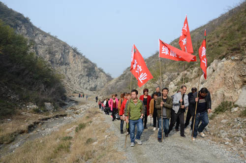 到達目的地,負責人講解了活動細則及注意事項后,大家就開始爬山,年輕的員工早已摩拳擦掌,躍躍欲試。在旗手的帶領(lǐng)下,大家爭先恐后的向山頂進發(fā)。
