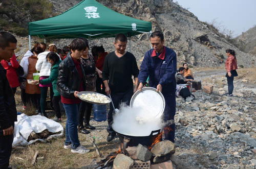 大約1個小時的時間,大家紛紛從山上下來,到達野炊地點開始共同制******心大餐。同志們熱情高漲,分工明確,一幅其樂融融的景象,不一會兒,愛心大餐便已出鍋,大家品嘗著自己的勞動成果,感覺格外香甜。