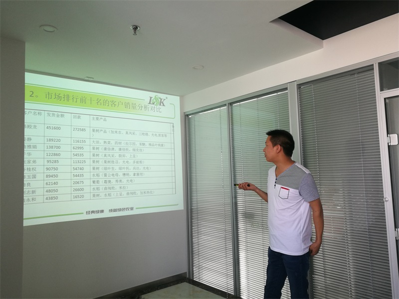 2017年6月6日-7日,山西運城綠康實業(yè)有限公司營銷工作半年總結(jié)會議在西安營銷中心隆重召開,董事長王章修、營銷總監(jiān)周小軍、財務(wù)部長董曉飛、市場部及銷售部全體員工參加本次會議,共同就今年上半年的銷售業(yè)績作出分析和匯報,并對下半年的銷售工作進行安排。除此之外,本次會議還特別邀請了廣西農(nóng)博士農(nóng)業(yè)服務(wù)有限公司蔬菜中心營銷總監(jiān)高波,對顆粒劑產(chǎn)品做詳細的講解。