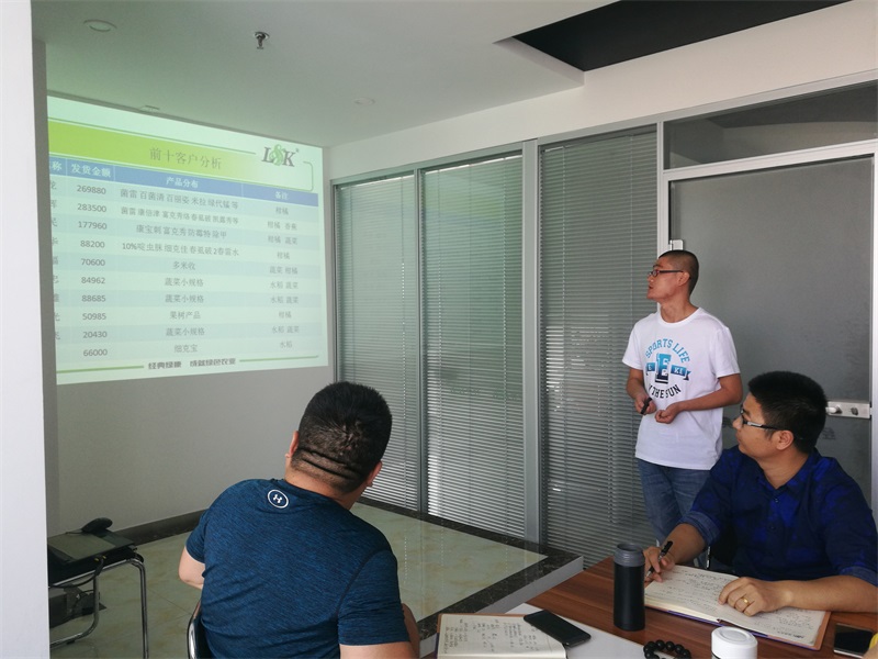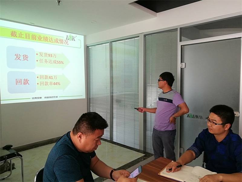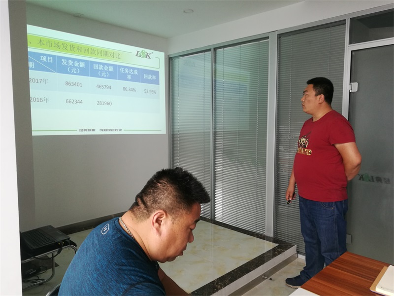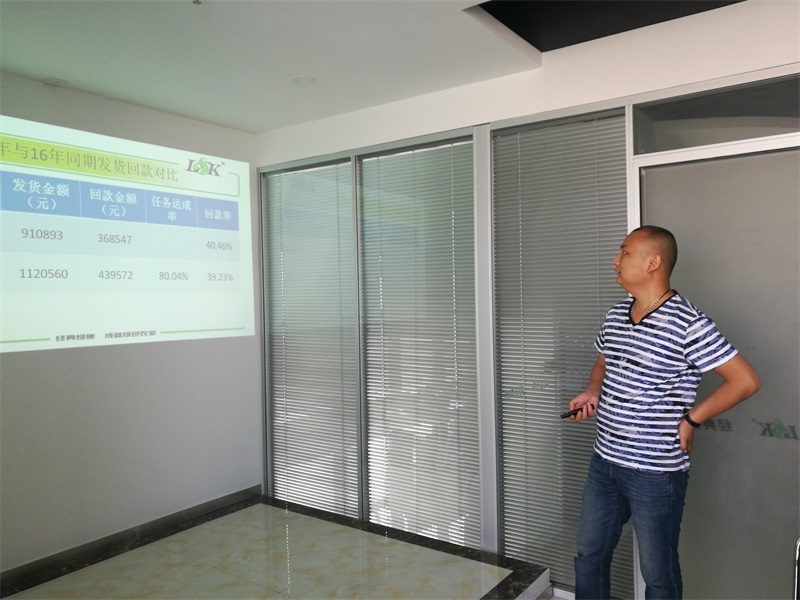 會議第二天,周總做2017年銷售工作總結(jié),首先對比了各個市場2016年與2017年同期發(fā)貨情況及公司大品的漲跌情況,其次總結(jié)了上半年銷售中存在的問題及需要改進的具體方案。之后安排了下半年的發(fā)貨及回款任務(wù),*** 后總結(jié)了銷售隊伍中存在的問題及下一步改進的辦法。并特別指出今年希望各位業(yè)務(wù)經(jīng)理按照公司要求的時間內(nèi)完成公司制定的任務(wù),以便公司全力以赴舉辦年底的植保會。