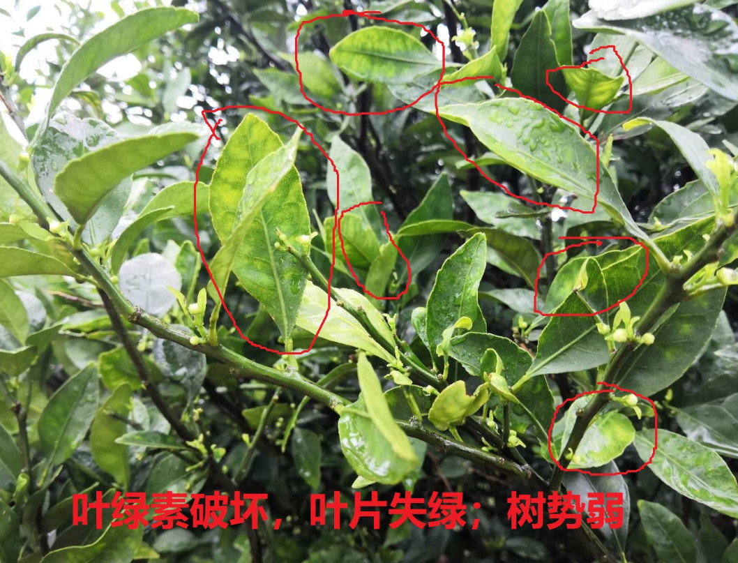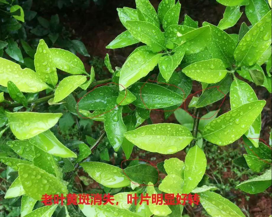 我們建議使用凱露森(2000倍)+黃變綠(1000倍)連續(xù)使用兩次進行改善。經(jīng)過兩次使用后觀察,果樹情況大有改觀?!?018年5月8日觀察】