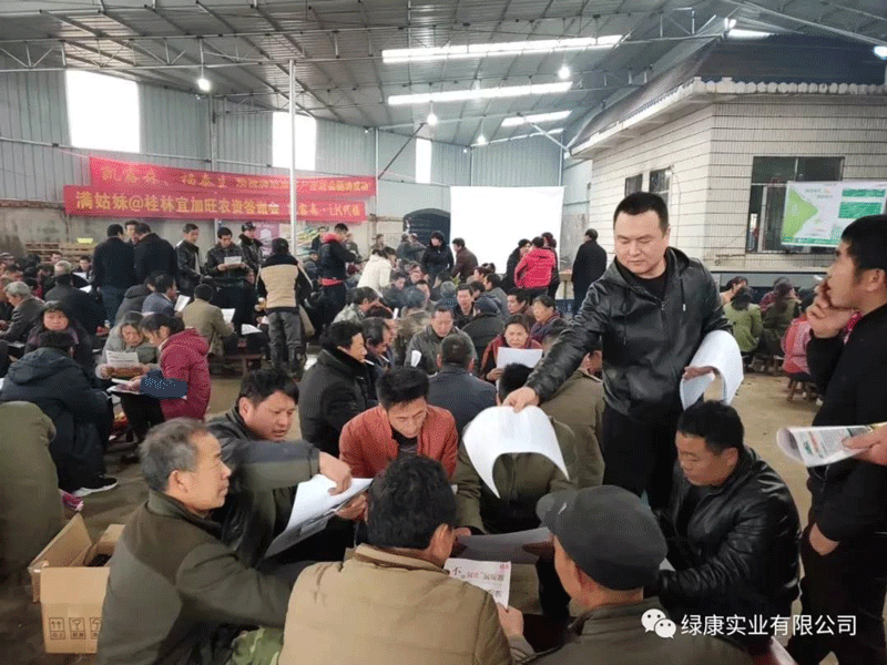 會議正式開始之前綠康工作人員向農(nóng)戶發(fā)放柑橘種植管理技術一覽表,農(nóng)戶學習的熱情很高,都在認真閱讀。