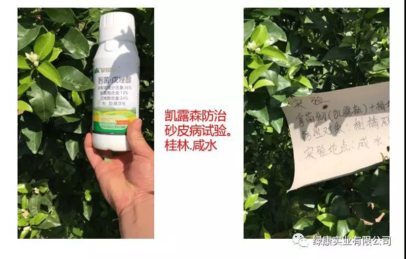 通過試驗事實證明凱露森能很好的防控柑橘砂皮病等******性病害,并且能夠讓綠葉更綠,果實更亮。